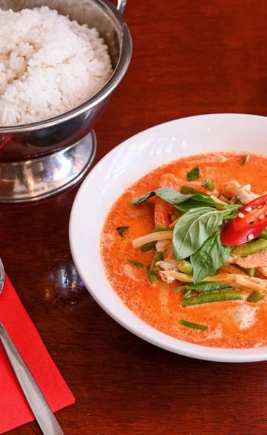 Thai cuisine is known for being complex and full of different flavor profiles, one of them being spicy. While we aim to provide everyone with a pleasant dining experience and accommodate everyone's wishes, we'd like you to know that we cannot completely rid a dish of its spiciness without disrupting the integrity of the dish. Do let us know your preference when it comes to the level of spice and we'll help with choosing the most suitable dish.