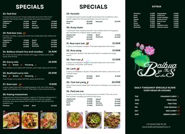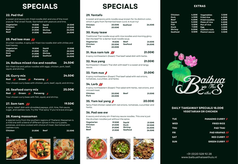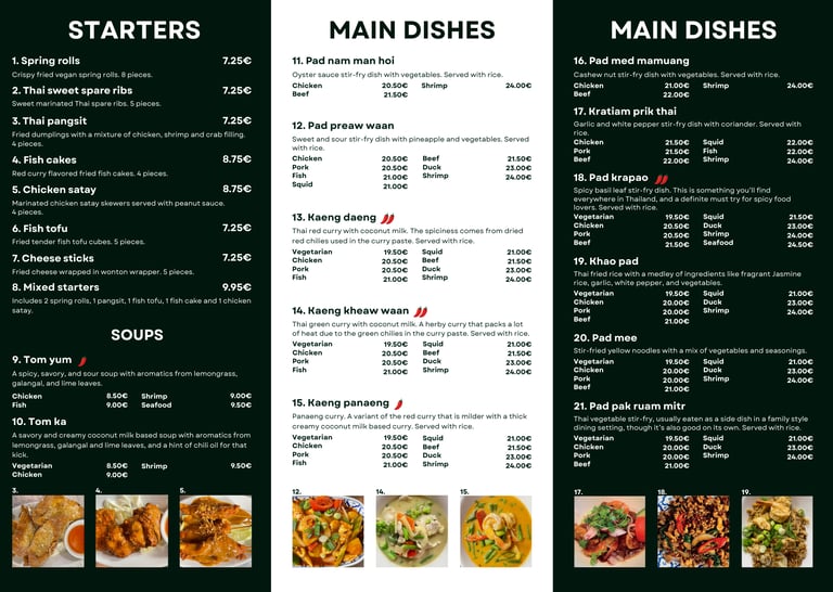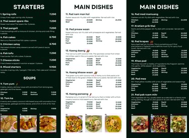 Our menu consists of Thai classics and dishes that are not so well known. Either way, they're guaranteed to be delicious.